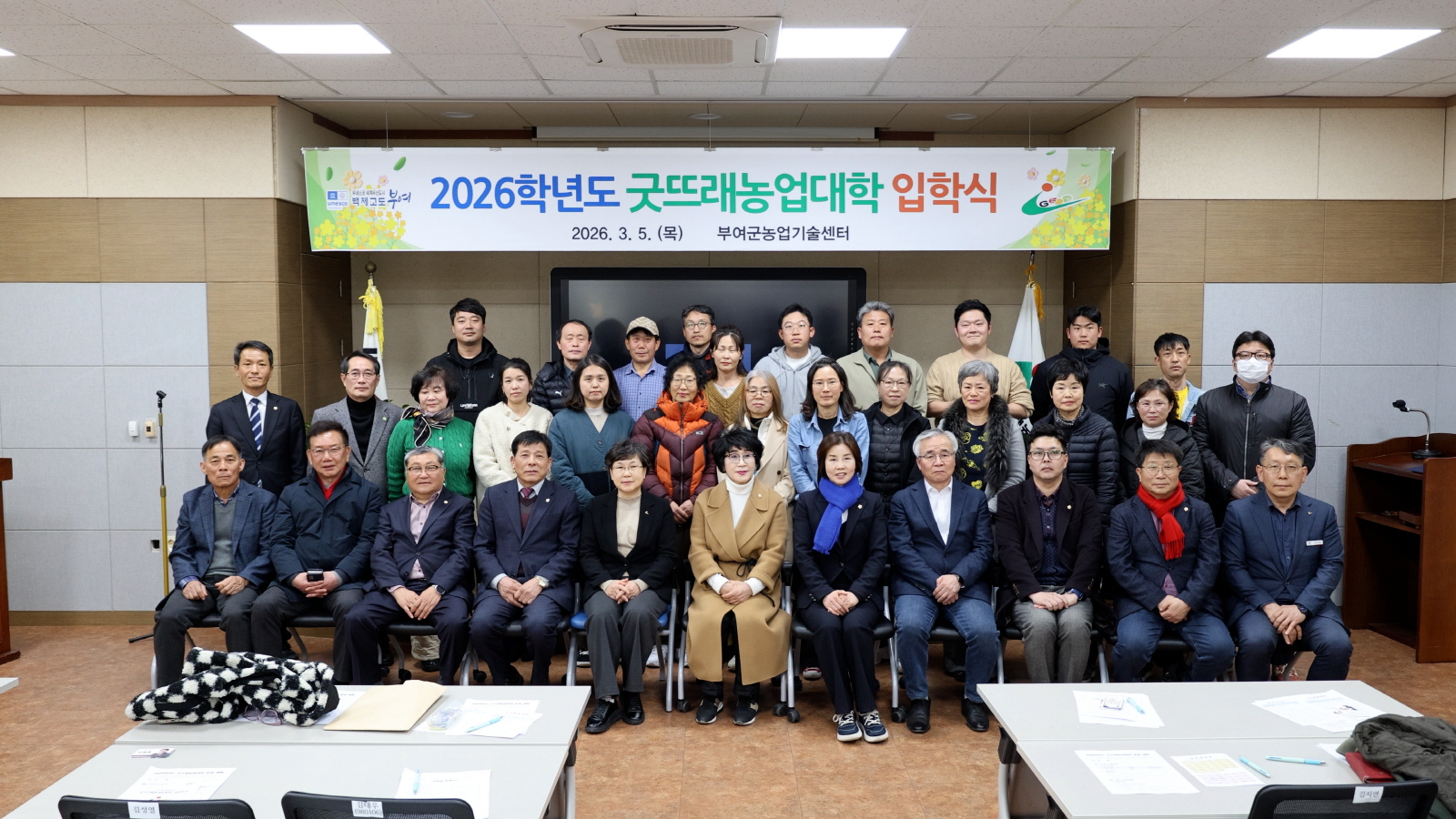 부여군이 미래 농업을 이끌 전문 인재 양성에 본격적으로 나섰다. 부여군은 9일 농업기술센터 굿뜨래홍보교육관에서 2026학년도 굿뜨래농업대학 입학식을 개최하고, 지역 농업의 미래를 책임질 신입생들의 새로운 출발을 알렸다. 이날 입학식에는 홍은아 부여군수 권한대행을 비롯해...