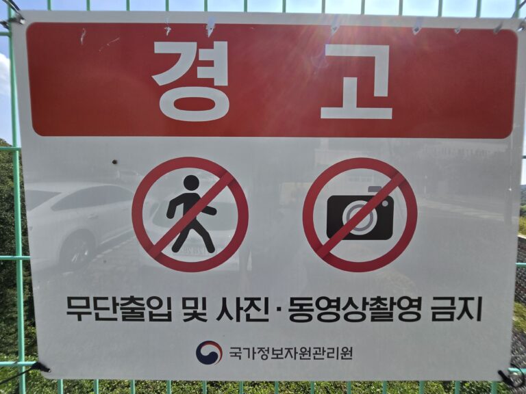 (사진 설명 : 공주 사곡면 산중에 위치한 국가정보자원관리원 공주센터 벽면에 부착된 보안 금지구역 알림판)