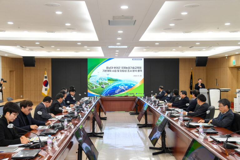 부여군(군수 박정현)은 지난 26일 충남대학교에서 박정현 부여군수와 김정겸 충남대 총장 등 관계자 28명이 참석한 가운데 ‘국제농업기술교육원 설립 기본계획 수립 최종 보고회’를 개최했다. 이번 보고회는 부여군이 보유한 세계적 수준의 농업 경쟁력을 바탕으로 국내 최초의 국제농업기술 전문 교육기관을 설립하기 위한 중장기 로드맵을 확정하고자 마련되었다.