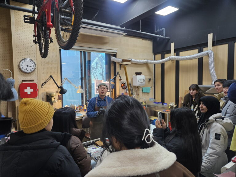 이날 유학생들은 우리나라 색동을 활용한 간단한 바느질 체험을 통해 색동 공깃돌을 만들고, 주머니에 금박을 찍어보는 체험에 참여하며 한국 전통공예의 섬세한 기법과 상징성을 경험했다. 체험에 참여한 유학생들은 직접 손으로 만들고 꾸미는 과정을 통해 한국 공예 문화에 대한 이해를 높이는 시간을 가졌다.